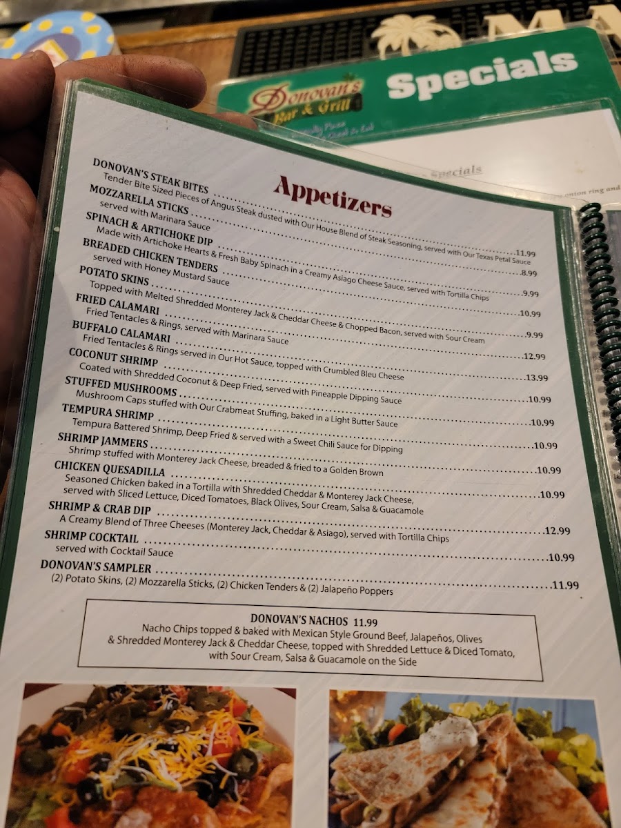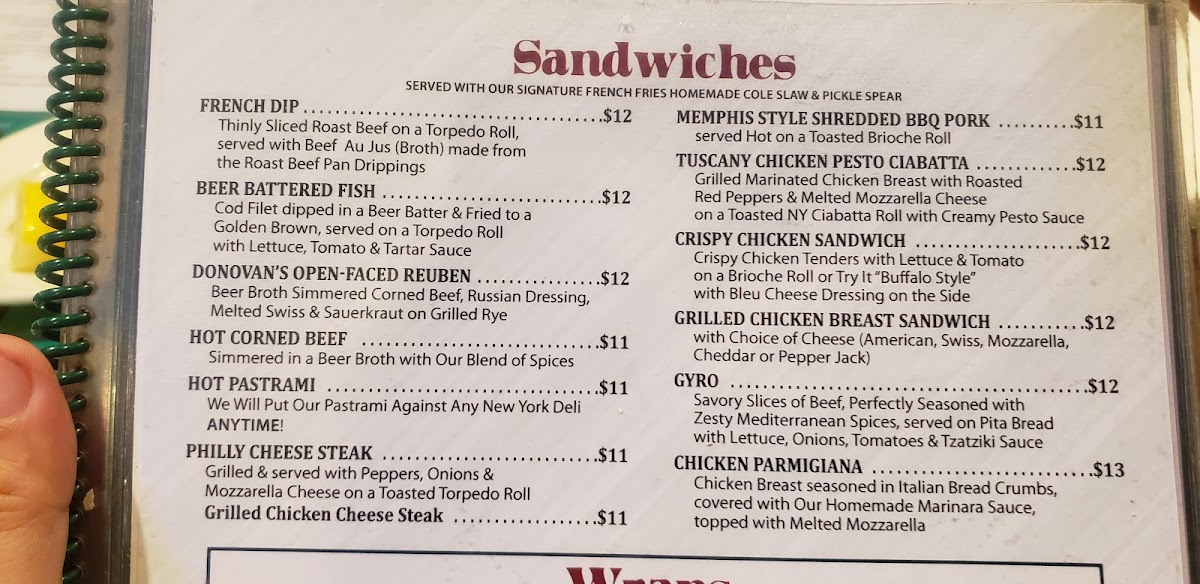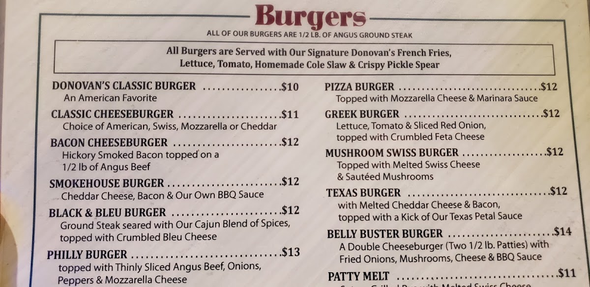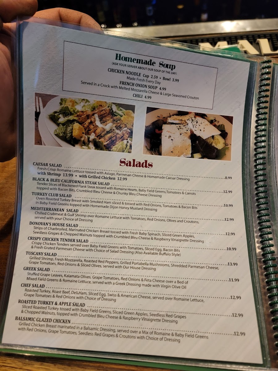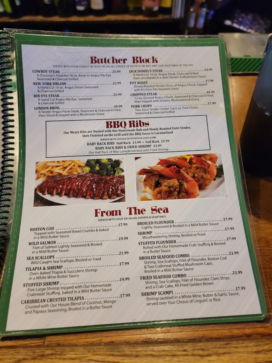 Donovans Bar & Restaurant & Grill offers a straightforward menu designed to complement its friendly, neighborhood bar atmosphere. The selection features comforting, familiar dishes alongside classic bar bites, making it a reliable choice for casual lunches, leisurely dinners, or late-night gatherings.